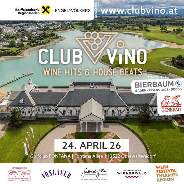 Am 24. April 2026 sind wir wieder zu Gast im Club Vino @ Golfclub FONTANA – in traumhafter Kulisse am türkisblauen Badesee und (hoffentlich!) schon mit Frühlingssonne auf der Terrasse.